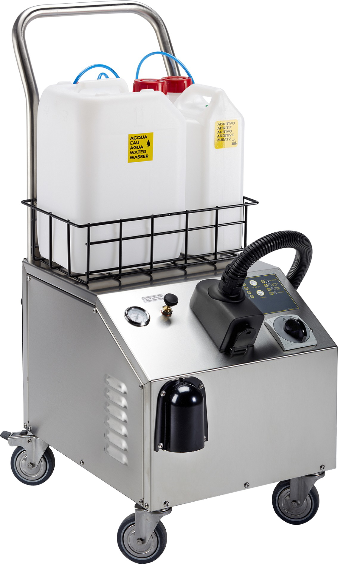 Parný čistič-generátor pary IVP 8T Gold FASA. Možnosť čistenia parou s možnosťou plynulého pridávania čistiaceho prostriedku do pary pre lepšiu účinnosť čistenia.