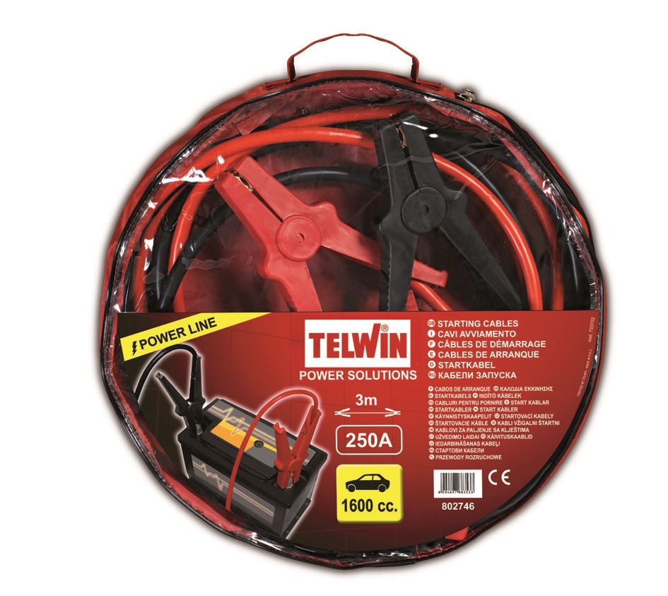 Štartovacie káble 250 A Telwin pre núdzové naštartovanie, dĺžka 3 m.