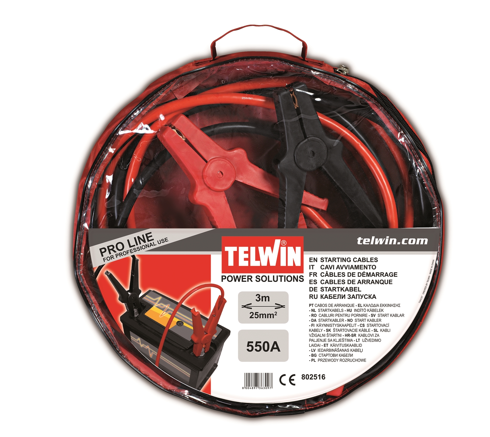 Štartovacie káble 550 A Telwin pre núdzové naštartovanie, dĺžka 3 m